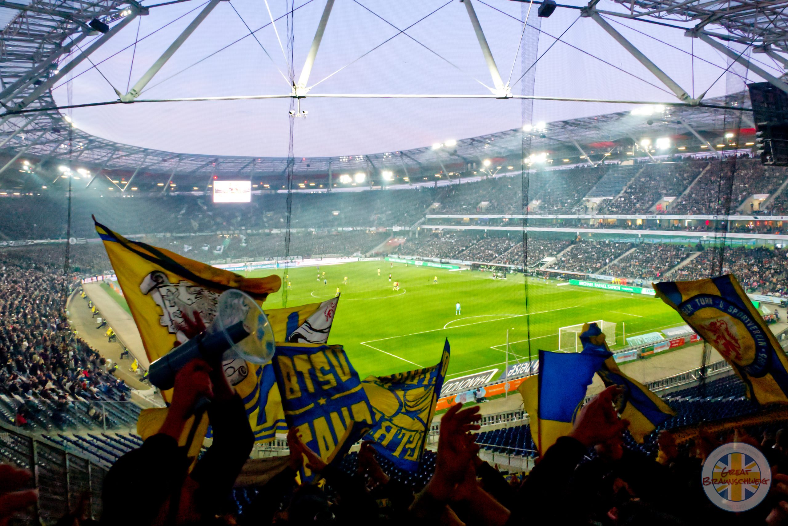 Die Braunschweiger Eintracht spielt in der Landeshauptstadt 1:1 und lag dank kämpferischer und leidenschaftlicher Leistung sogar mit 1:0 in Führung. Das Feuer von den Rängen ist eindeutig auf die Jungs in blau und gelb übergesprungen und somit verdienten sich das Team aus der Löwenstadt diesen 1 Punkt im Niedersachsenstadion. Bilder aus dem Block für Euch …